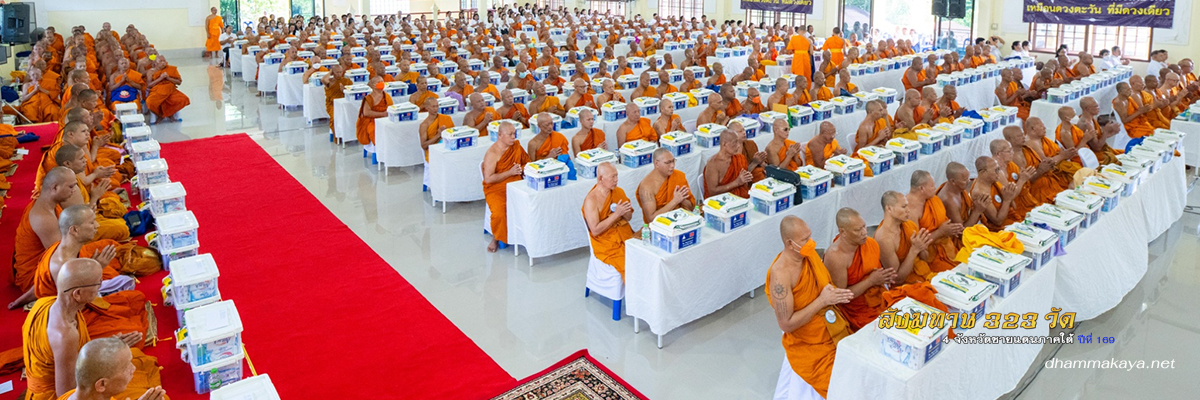 อนึ่ง พิธีถวายสังฆทานแด่คณะสงฆ์ 323 วัด 4 จังหวัดชายแดนภาคใต้ จัดขึ้นโดยวัดพระธรรมกาย มูลนิธิธรรมกาย ร่วมกับพุทธบริษัท วัตถุประสงค์เพื่อถวายเป็นพุทธบูชา รักษาแสงธรรมไม่ให้ดับสูญไปจากดินแดนภาคใต้ พร้อมกับสร้างขวัญและกำลังใจแก่พุทธศาสนิกชนในพื้นที่ให้เข้มแข็งขึ้น จัดครั้งแรกเมื่อวันที่ 7 มิถุนายน พ.ศ.2548 ณ วัดมุจลินทวาปีวิหาร จังหวัดปัตตานี ปัจจุบันจัดติดต่อกันเป็นปีที่ 20 ครั้งที่ 169 และจัดอย่างต่อเนื่องจนกว่าเหตุการณ์จะสงบ ส่วนกองทุนหนุนแรงใจช่วยครูใต้ มอบแล้วกว่า 40,000 กองทุน ข้าวสารอาหารแห้งมอบช่วยเหลือพระสงฆ์เจ้าหน้าที่ตำรวจ ทหาร ครู และประชาชน ในพื้นที่เสี่ยงภัยกว่า 6,000 ตัน